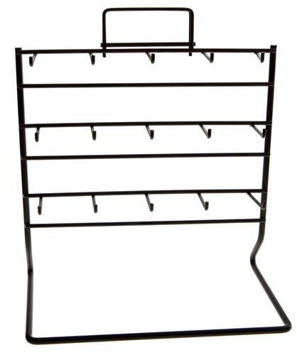 Metal rack for displaying pins on mini cards.