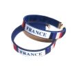 Durable flexi-plastic embroidered nylon bracelet. Size: 0.5" wide and 2.5" diameter. One size fits all.