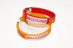Durable flexi-plastic embroidered nylon bracelet. Size: 0.5" wide and 2.5" diameter. One size fits all.